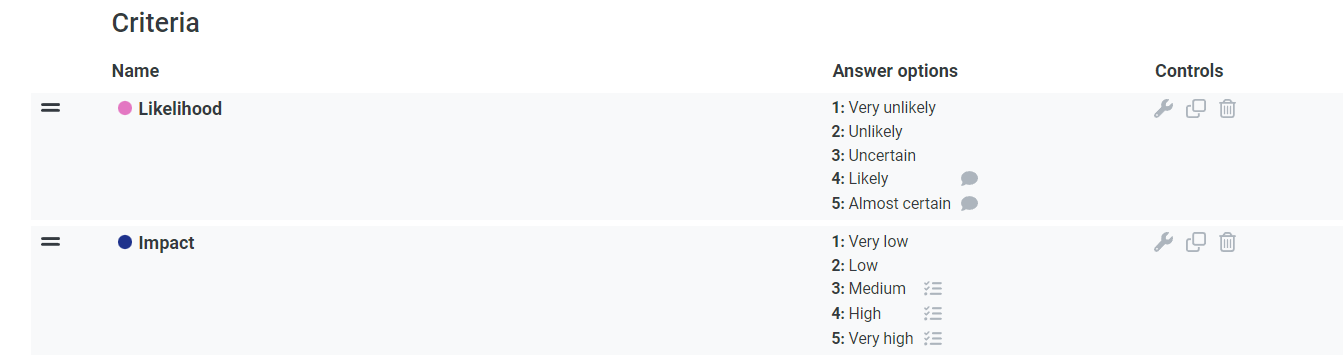 Click the wrench to edit the criterion, the response scale, or to add more advanced questions.