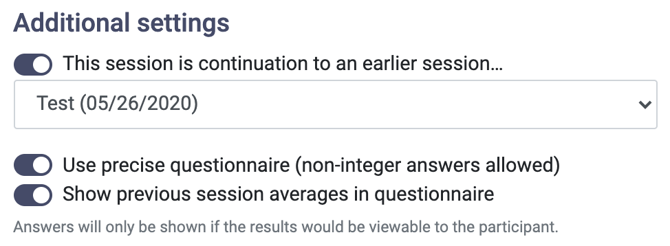 This allows you to correct the answers of previous session in the new session, based on the conversation in your workshop. Go to the form of the summary session that you have just created and drag the slider to correct value.
