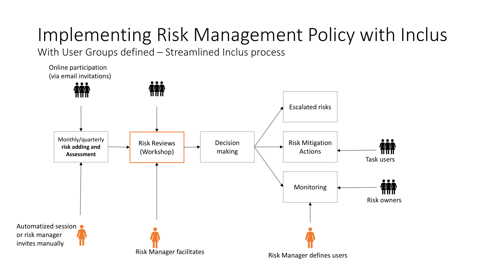 With the latest Inclus features, it is now possible to build more continuous Inclus process where different teams and organisations can independently identify, assess and monitor the risk situation.