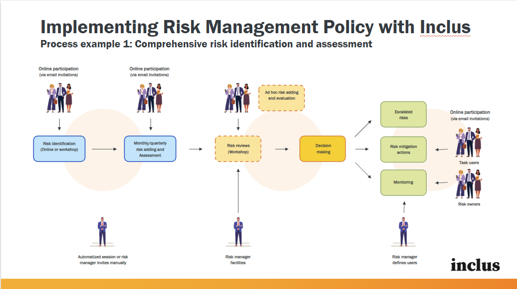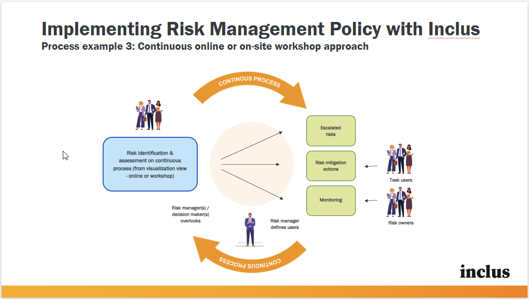 When the risk process has been done already one time with Inclus, the new assessment rounds are easier with just using the risk assessment session without the identification session.