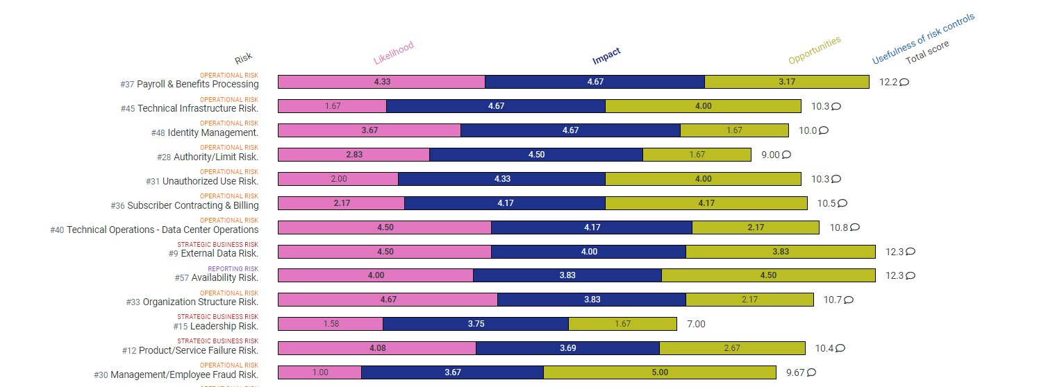 See the individual answer results and comments per risk by clicking risk name: