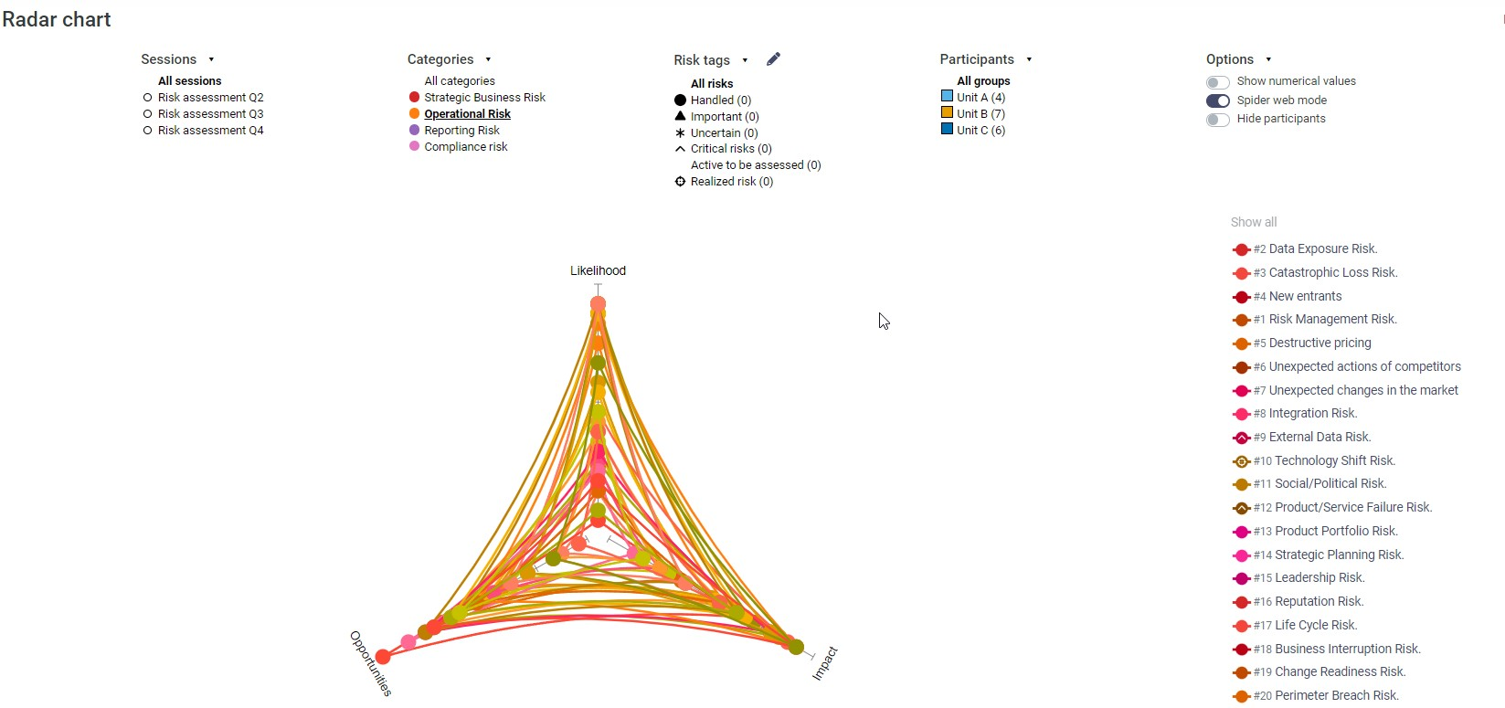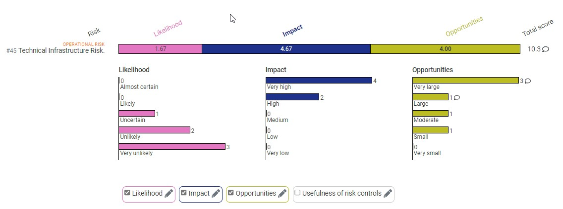 - Category filtering allows to view the risk per category, for example only strategic risks