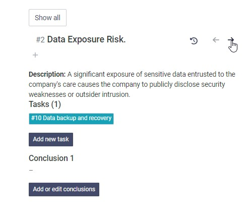 Navigate to the next risk or previous risk with arrows - if you want to go back to the overview, click the show all button