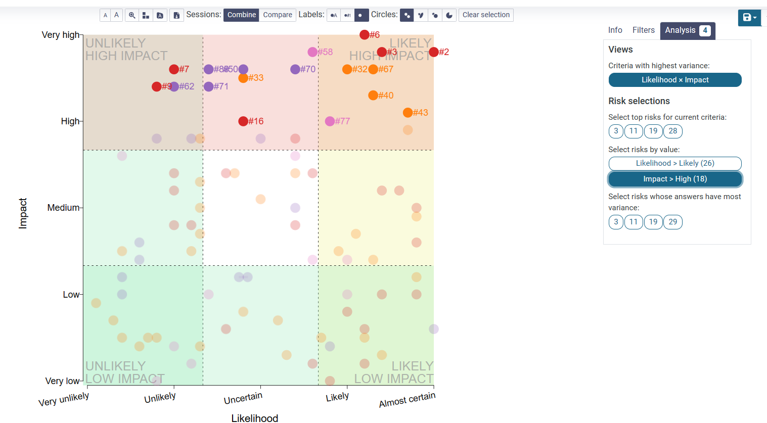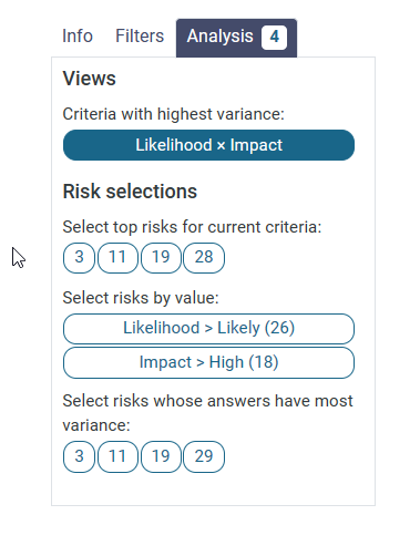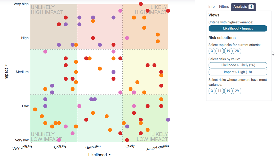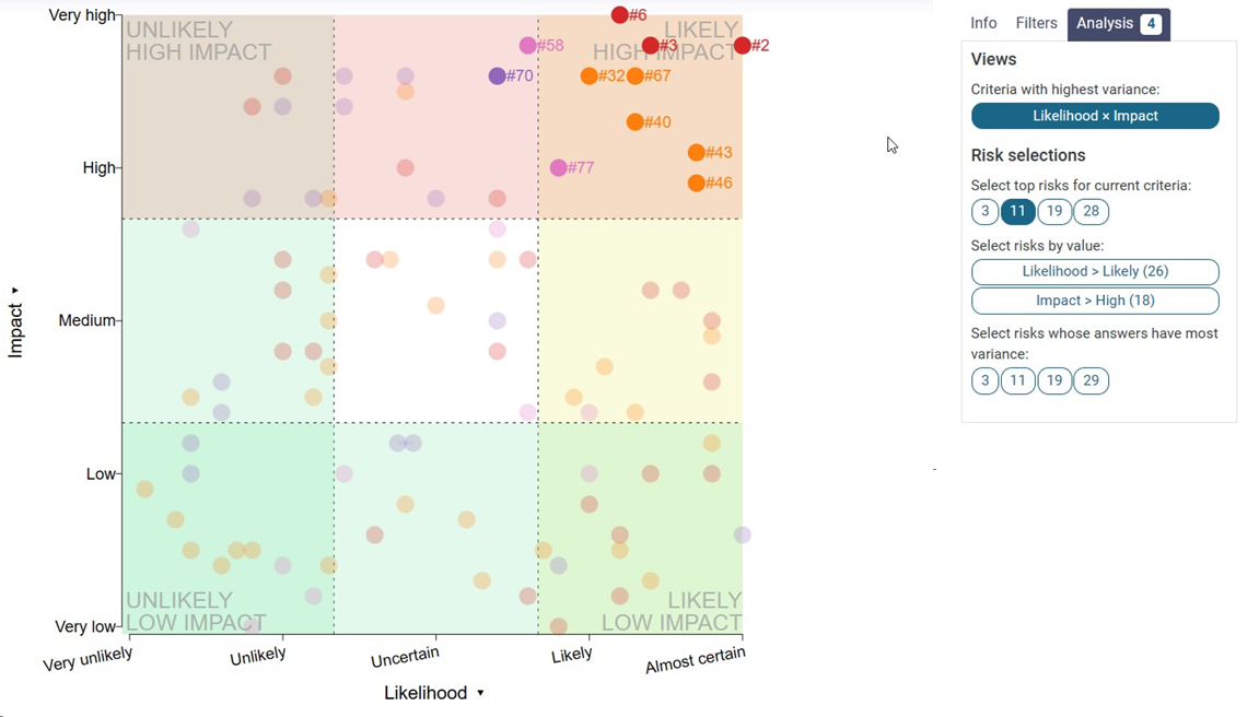 If you want to view the risks with the most variance in answers, it highlights the amount of risks you have chosen and draws them as ellipsis.