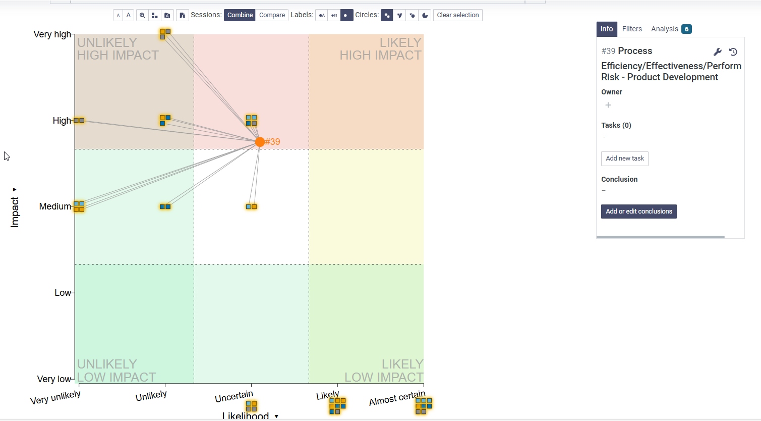 When you want to look one certain risk, click the risk dot and you can see the individual answers to that risks.