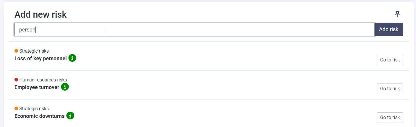 Participants can use the Add new risk functionality also as a search bar.