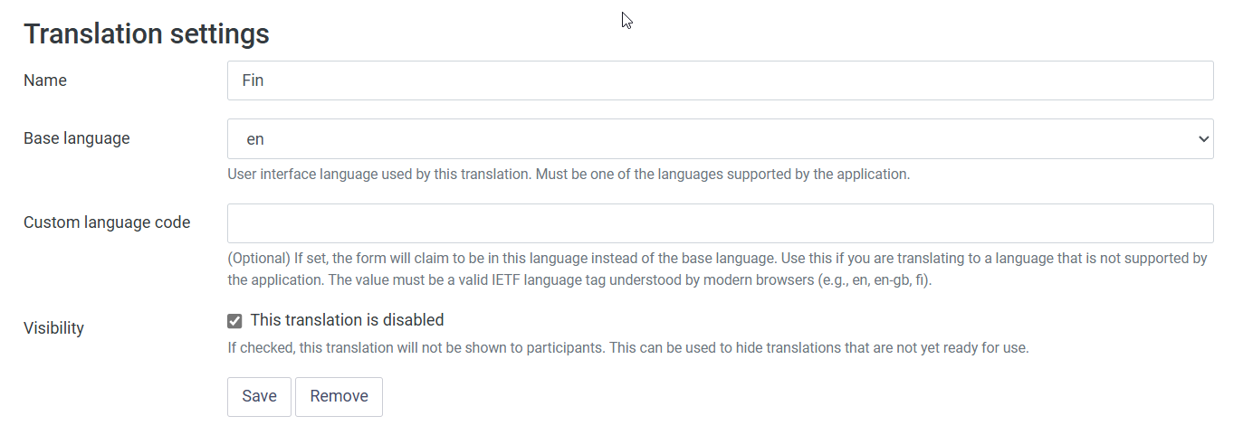 Note, click the translation disable check button to show the translation to the participants, when you have finished adding translations.